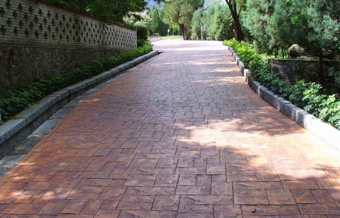 用該硬化劑材料制作的壓模地坪具有耐磨、防滑、抗凍、不易起塵、易清潔、高強度、耐沖擊、以及色彩和款式方面有廣泛的選擇性、成本低和綠色環保等特點,是目前園林、市政、停車場、公園小道、商業和文化設施領域的理想選擇。