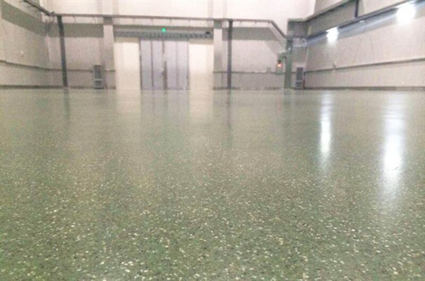 環氧彩砂地坪施工溫度應控制在大于5℃,相對濕度應控制在小于60%。要求混凝土的含水量應小于8%,以保證環氧樹脂涂層與混凝土基面的結合強度。