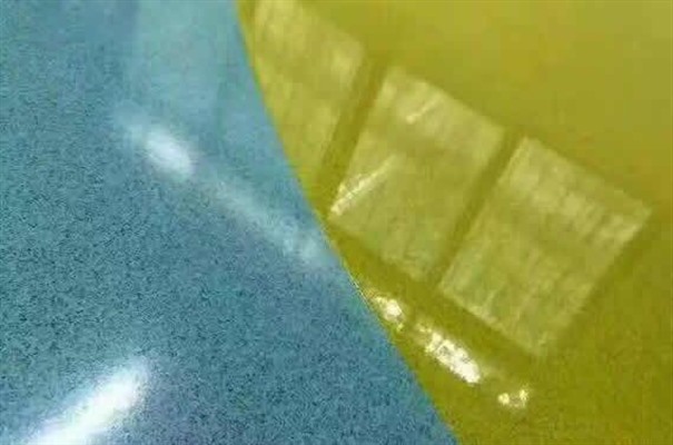 按比例準確配好環氧彩砂漆(主劑:固化劑=3:1),用刮刀在打磨后的表面薄涂一遍環氧彩砂漆。24小時內可以上人時,鏝涂或噴涂一遍準確配好的環氧彩砂漆。噴涂或用無掉毛輥筒輥涂1-2遍準確配好的啞光罩面清漆。