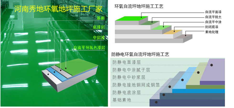 鄭州環氧樹脂防靜電自流平地坪是一種高強度、耐磨損、美觀的地板,具有無接縫、質地堅實、耐藥品性佳、防腐、防水、防塵、保養方便、維護費用低廉等優點。可根據不同的用途要求設計多種方案, 如0.5mm厚薄層涂裝、1-5mm厚的自流平地面、防滑耐磨涂裝、砂漿型涂裝、防靜電、防腐蝕涂裝等。 環氧地坪從開始時用于功能性地坪:如防腐、耐磨、防滑,發展到通用的普通工業地坪,除了具有功能性的要求,還具有裝飾性的效果。