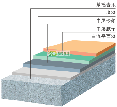 環氧自流平地面涂層:底涂層,中涂層,膩子層,面涂層。
