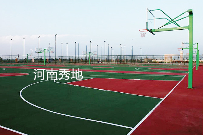 河南秀地建筑材料有限公司:硅PU籃球場面層施工使用的是一種水性材料,為單組份有機硅改性聚氨脂,面層為合成樹脂,是一層一層地直接在水泥地上面施工,目前市面上硅PU球場厚度一般都是做3MM-5MM,客戶可以根據實際需求選擇厚度,當然,厚一點使用的材料就多些,造價自然就高些。