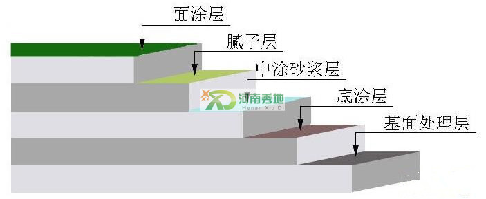 2.環(huán)氧底漆層施工:涂刷高效底漆一道,涂量要足,使用量是0.2kg/㎡,在處理清潔、平整的素地表面,采用環(huán)氧樹脂底涂材料封閉批涂一遍,環(huán)氧樹脂底涂材料有很強(qiáng)的滲透性,能滲入基層內(nèi)部,增強(qiáng)涂層和基層的附著力,其涂布必須連續(xù),不得間斷,涂布量以表面剛好飽和為準(zhǔn),附著強(qiáng)度:要求在25kgf/cm2以上。