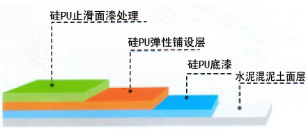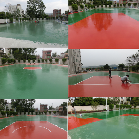 基礎要求平整度好,無裂縫、脫皮等情況,瀝青混凝土要求有足夠的強度及密實度。如是水泥混凝土基面的,要在其表面做一道底漆處理。新水泥基礎需在無降水天氣中曝曬20天以上,待水泥地中水份充分蒸發;舊的水泥地面需進行打磨和平,保證地面光滑無粉塵,增強球場硅PU層與水泥地面的粘和性。